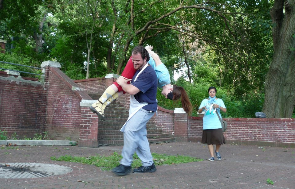 Our closing show was on the red steps in front of the Van Cortlandt House Museum. By far, our least attended but our most favorite to perform. There were many levels to play on and we had a great cast party afterwards. Lots of fun.